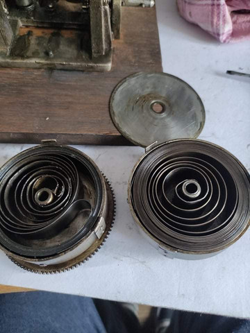 Uvnitř mě čekal zajímavý a poměrně hodně kvalitní dvoupružinový motorek značky Stehle - tzv. spiral drive.