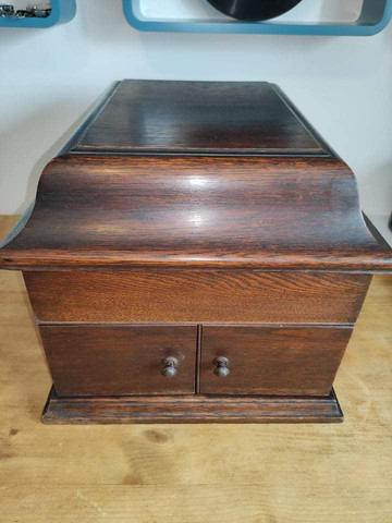 Klasický dřevěný zvukovod plný výrobních vad - škvír a netěsností. Tudy utíká zvuk pryč. Gramofon pak hraje potichu a zahuhlaně. Muselo to hrát blbě už od začátku.